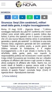 Sicurezza: Serpi (Sim carabinieri), militari amati dalla gente, e' miglior incoraggiamento