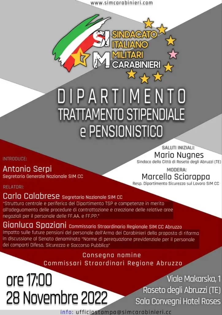 “Convegno Dipartimento Trattamento Stipendiale e Pensionistico” e presentazione dei Commissari Straordinari SIM-CC Regione Abruzzo.