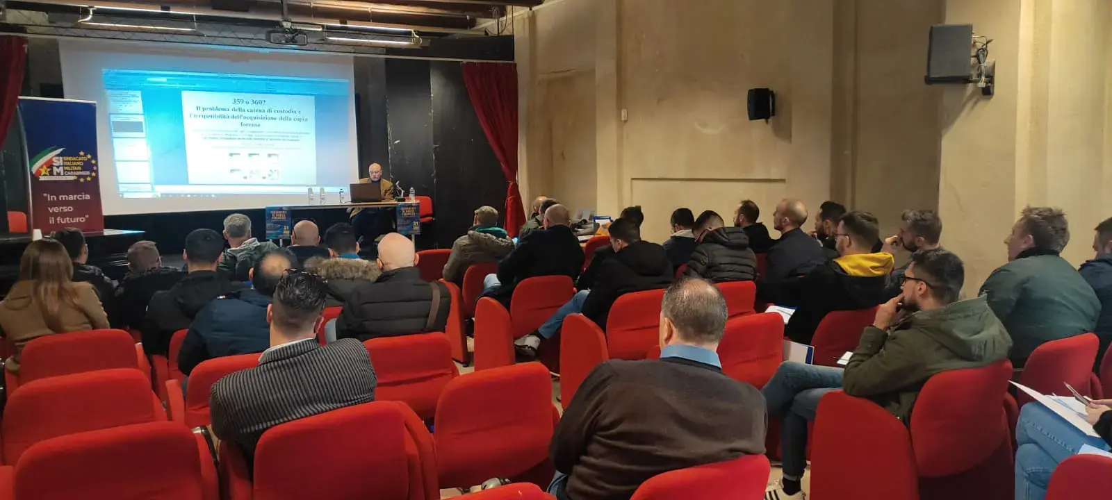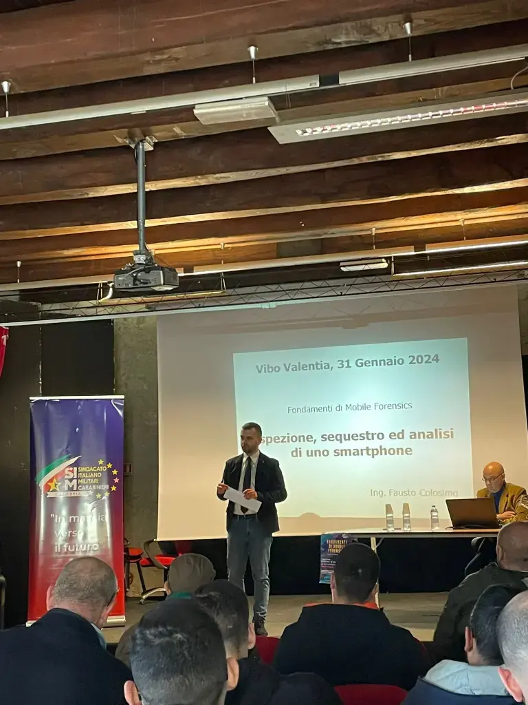 Il corso, fornito gratuitamente agli iscritti al SIM Carabinieri Calabria, è stato svolto dall’ingegnere Fausto Colosimo, consulente tecnico informatico forense presso numerose Procure e Tribunali che ha illustrato, con esempi pratici, gli elementi basilari dell’informatica forense. Presenti per l'occasione, oltre a numerosissimi iscritti provenienti da tutta la regione, anche il Segretario generale regionale aggiunto Onofrio Massarotti ed il Segretario generale provinciale del SIULP -Polizia di Stato di Vibo Valentia, Franco CASO.