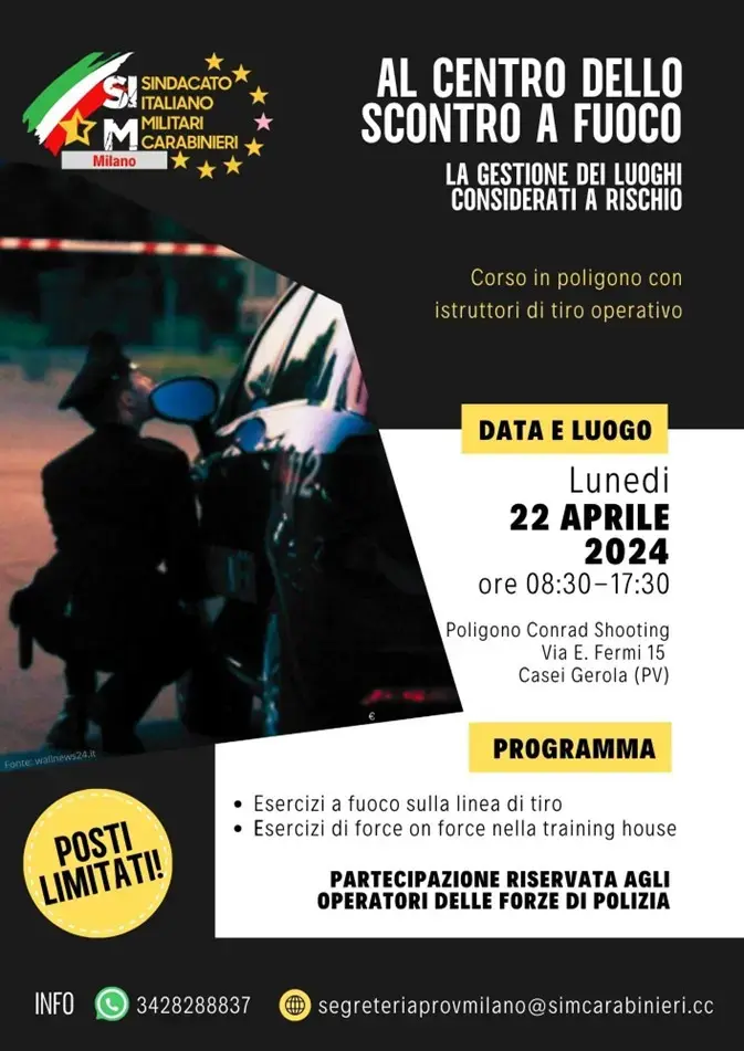 Il SIM di Milano vuole però continuare su questa scia ed ha già in programma per il 22 aprile 2024 un corso di tiro operativo in poligono dedicato ai colleghi. Le iscrizioni si sono appena aperte e saranno possibili contattando la segreteria provinciale. Nella locandina in basso i dettagli.