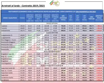 Arretrati al lordo - Contratto 2019-2021 - Tabelle aumenti parametrali
