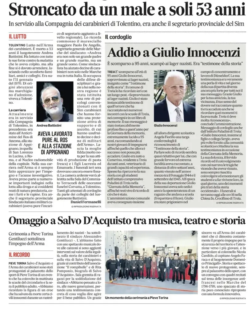 Ci uniamo tutti al dolore della famiglia Battisitini e del SIM Carabinieri Marche.