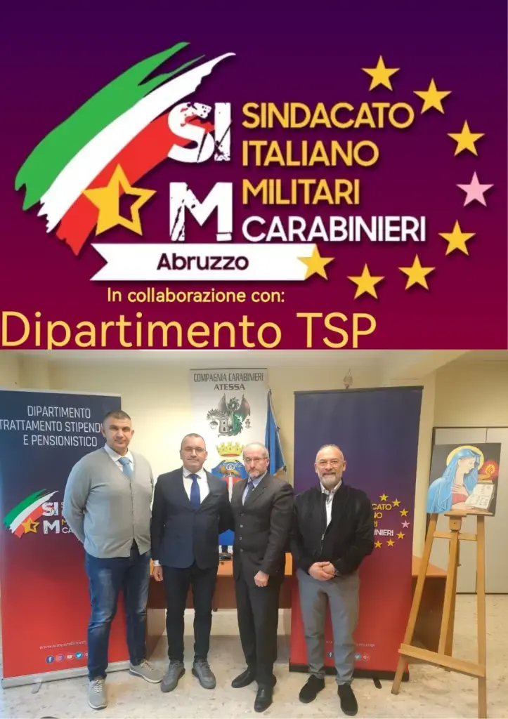 Erano presenti Il Segretario Nazionale, nonché responsabile del Dipartimento TSP, Carlo Calabrese che ha illustrato le funzioni del Dipartimento TSP e le sue competenze in merito all’adeguamento delle procedure di contrattazione e della creazione delle relative aree negoziali per tutto il personale delle FF.AA. e FF.PP; il Segretario Straordinario Generale Regione Abruzzo, nonché responsabile dell'area trattamento pensionistico del Dipartimento TSP, Gianluca Spaziani, il quale ha presentato una relazione sul probabile impatto sulle future pensioni del personale dell’Arma dei Carabinieri della proposta di riforma in discussione al Senato, “disegno di legge Gasparri”, parlato del trattamento di fine Servizio, indennità Supplementare, Cause di servizio, vittime del dovere, 6 scatti Stipendiali. Hanno altresì coadiuvato all'ottima riuscita dell’assemblea i Commissari Straordinari per la Provincia di Chieti: il Commissario Straordinario Gianluca Pasquini, il Commissario Straordinario Provinciale Fabio Creti’, il Commissario Straordinario Mario Dettori. Si ringrazia il Comandante della Compagnia Carabinieri di Atessa Capitano Alfonso Venturi per la collaborazione e disponibilità.