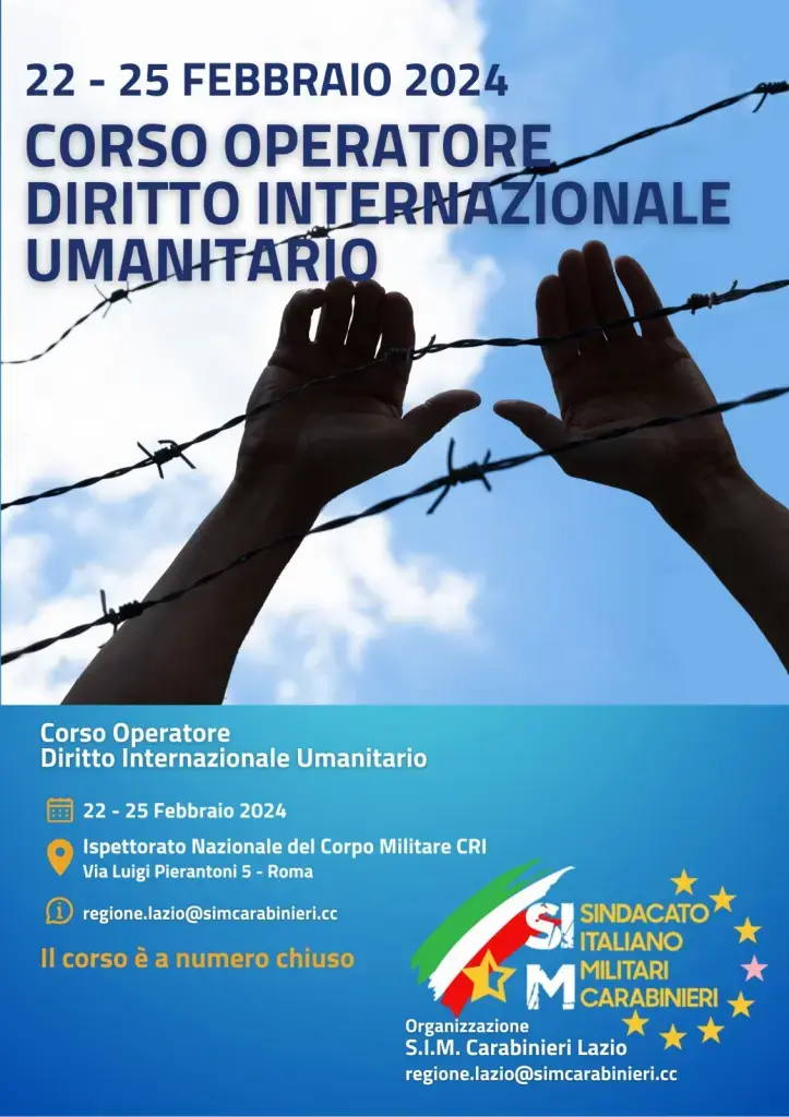 ROMA - Nell'ambito delle attività formative a favore dei propri iscritti, il SIM Carabinieri Regione Lazio, in collaborazione con la Commissione DIU della Croce Rossa Italiana, organizza un Corso per Operatore di Diritto Internazionale Umanitario.