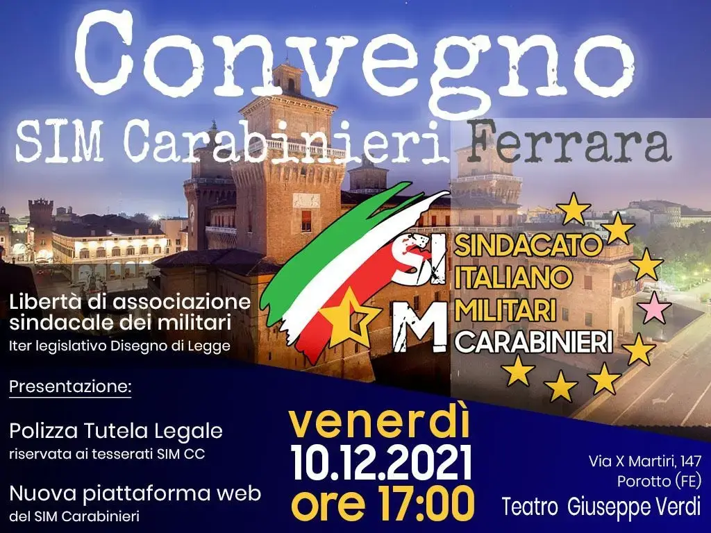 Si terrà venerdì 10 alle ore 17.00, presso il Teatro Giuseppe Verdi di Porotto (FE) il convegno organizzato dal SIM Carabinieri Ferrara, con ingresso secondo disposizioni vigenti anticovid.
