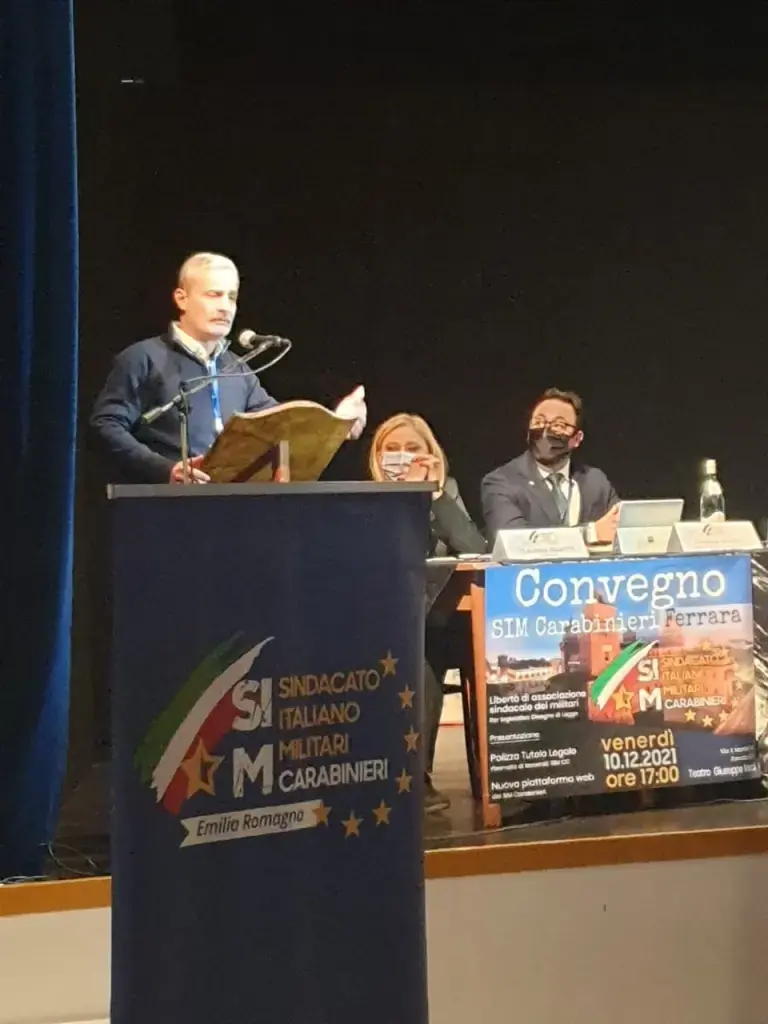 Una frase che è passata di bocca in bocca ai vari relatori, chiamati ad illustrare l’attività del sindacato, a relazionare sull’Iter legislativo del Disegno di Legge sulla Libertà di associazione sindacale dei militari, sulla nuova Polizza di Tutela legale degli iscritti e sulla nuova Piattaforma web dedicata agli iscritti. Tra i presenti anche l’assessore Fornasini in rappresentanza dell’amministrazione comunale che la lasciato una testimonianza di approvazione e di vicinanza al sindacato. Intervento molto apprezzato quello di Claudio di Egidio, Segretario Regionale Emilia Romagna, che ha illustrato con professionalità la nuova polizza assicurativa di tutela legale stipulata dal SIM Carabinieri per i propri iscritti: “Una polizza che, finalmente, consentirà molta più serenità a chi opera sulla strada, senza quel timore, che spesso pesa come una spada di Damocle sulla testa, di dover affrontare spese legali per procedimenti che andrebbero a gravare sul bilancio famigliare”. Una maggiore serenità nel lavoro del Carabiniere che si rifletterebbe positivamente anche a vantaggio dell’intera collettività in termini di miglior efficienza e sicurezza. E’ pieno di cuore l’intervento di Francesco Mutri, Segretario Generale Regionale Emilia Romagna che parla del perché nasce il SIM CARABINIERI, dei passi avanti, dell’evoluzione, del futuro. “Un sindacato che non è contro nessuno e non lo deve essere. Un sindacato che è di tutti. Un sindaco oggi più maturo che ha lo scopo di ottenere qualcosa di giusto e concreto per tutti. Per dare delle risposte a chi questa professione la fa e di conseguenza anche al cittadino che si rivolge al “carabiniere” e che gli chiede una “soluzione”. Perché spesso il carabiniere si trova a dover interpretare, a cercare di essere anche un po’ psicologo, un po’ avvocato e che a volte si trova davanti a dei buchi legislativi e cerca di risolvere le situazioni con il metodo del “buon padre di famiglia”. Un sindacato che si interfaccia con i vertici e con la politica. Un sindacato che lavora assieme per non lasciare più nessuno da solo”.
