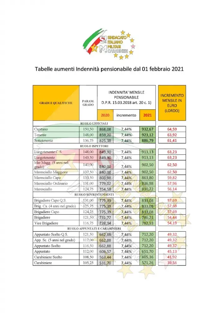 Arretrati al lordo - Contratto 2019-2021 - Tabelle aumenti parametrali