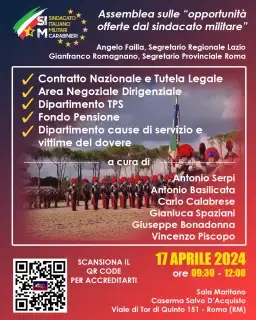 ROMA - Si terrà il prossimo 17 aprile, dalle ore 09:30 alle 12:00, presso la Sala Maritano della Caserma Salvo D'Acquisto di Tor di Quinto, l'assemblea sindacale organizzata in collaborazione con la Segreteria Regionale SIM Lazio guidata da Angelo ...