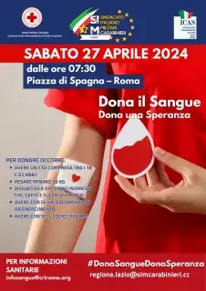 ROMA - Il 27 aprile 2024 il SIM Carabinieri Lazio organizza una giornata di donazione sangue in Piazza di Spagna, nel cuore di Roma. La raccolta verrà effettuata dall’Area Metropolitana di Roma della Croce Rossa Italiana e patrocinata ...