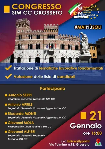 Venerdi 10 maggio 2024 dalle ore 10 alle ore 13.00, il SIM Abruzzo e Molise terrà ufficialmente presso la sala riunioni del Comando Provinciale Carabinieri di Pescara la prima assemblea Sindacale. Tutto il personale dell’Arma dei Carabinieri, iscritto e non ...